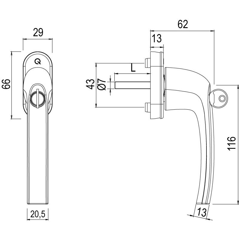 greenteQ Fenstergriff FG10.TBT1.AL abschließbar - inkl. Schrauben