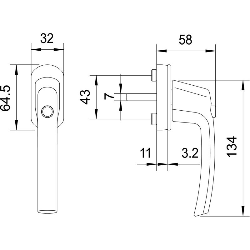 MACO-Aluminium-Fenstergriff mit Sperrknopf.