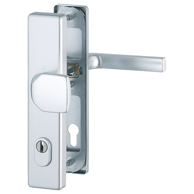 Hoppe Einbruchschutz Haus- und Nebeneingangstüre-Wechselgarnitur Dallas 61G/2222ZA//2210/1643, Aluminium F1 silberfarbig eloxiert, Schildbreite 54 mm,
