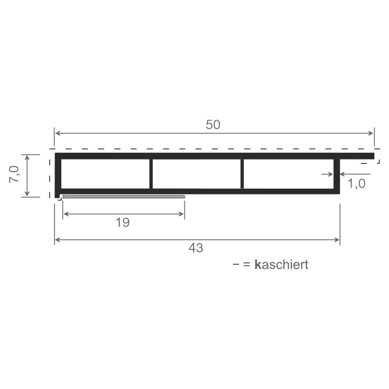 Kammerprofil 50x7mm SK Lg. 6,00m foliert mit Nase 701505-083 Schiefergrau Glatt