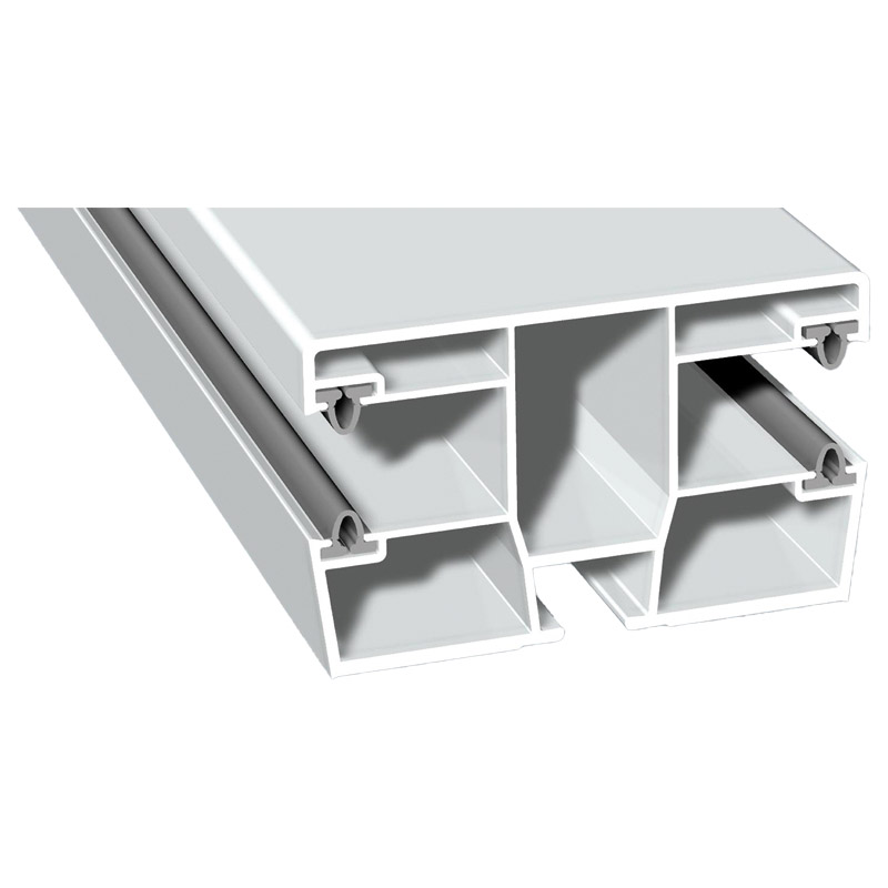 Mini-Doppel-Rollladenführung 77x47mm Lg. 6,00m Weiß, mit vier grauen Weichlippen, VE: 24m