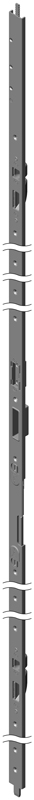 Auf das jeweilige Profilsystem abgestimmter, zwei- oder mehrteiliger Stulpflügelbeschlag mit vertikalem Ausschluss nach oben und unten, für Türhöhen 1920 mm bis 2830 mm, hell verzinkt, mit Rutschentechnik, mit AT-Stück 115-41, mit je 2 Durchbrüchen im oberen und unteren Bereich für Fallen, Rundbolzen und/oder Schwenkhaken einer KFV-Mehrfachverriegelung AS2300, AS2500, AS2600, AS2750 etc. in gleicher B-Maßvariante.
