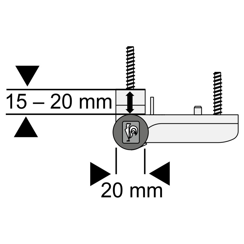 - Türflügel in 6 Richtungen, bei eingehängtem Türflügel, verstellbar: Horizontalverstellung +/- 5 mm, Höhenverstellung +3 mm / -2 mm, Andrucksverstellung +/- 2,5 mm.