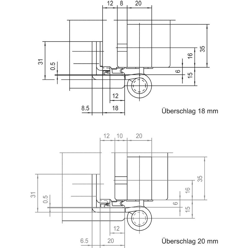 - 3D verstellbar (Seite +/- 3,0 mm, Höhe +/- 3,0 mm, Andruck +/- 3,0 mm)